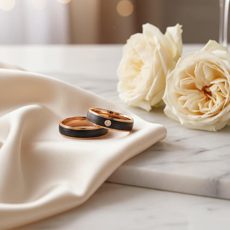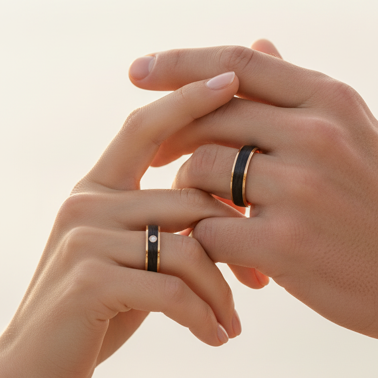 Every wedding ring is unique! During production, the individual winding of the carbon fiber can lead to slight differences in the surface marbling of the rings, which once again underlines the unique character of the models and should not be seen as an optical defect.