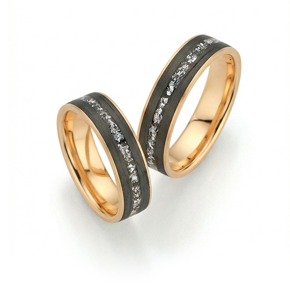 585/- Apricotgold, Carbon mit Silver Flakes