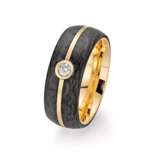 Gold rings are traditionally used as wedding rings. These remarkable pieces of jewellery are timeless and elegant. Let the charm of this time-honoured material capture you as no other to exemplify the meaning of the bonding of two lovers. Produced in a sustainable process by Fischer wedding rings.